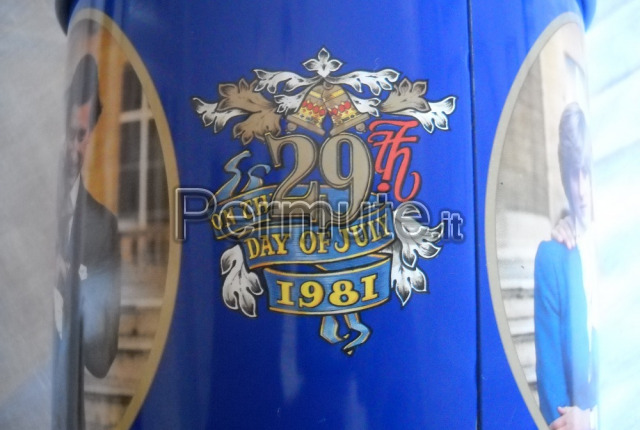 RARISSIMO BARATTOLO IN LATTA DI PREGIATI BISCOTTI DELLA DITTA: HUNTLER & PALMERS IN ONORE DEL MATRIMONIO TRA LADY DIANA E CARLO D'INGHILTERRA DEL 29 LUGLIO DEL 1981