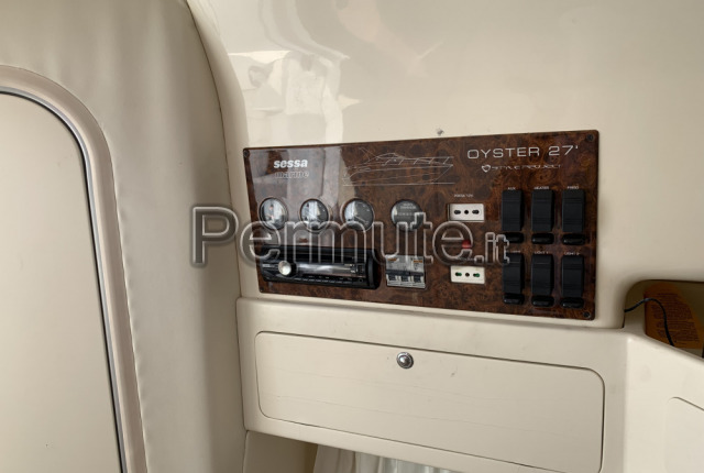 sessa oyster 27,anno 2007,motori benzina 2x225 cv,rimessa sempre al coperto in inverno, serbatoio benzina 320 lt, serbatoio acqua 120lt.